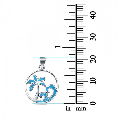 Waves and Palm Trees Lab Created Blue Opal Charm Pendant 925 Sterling Silver