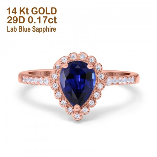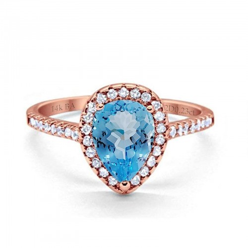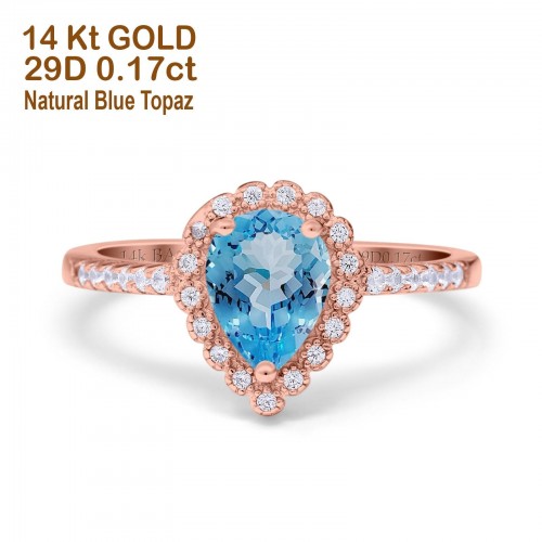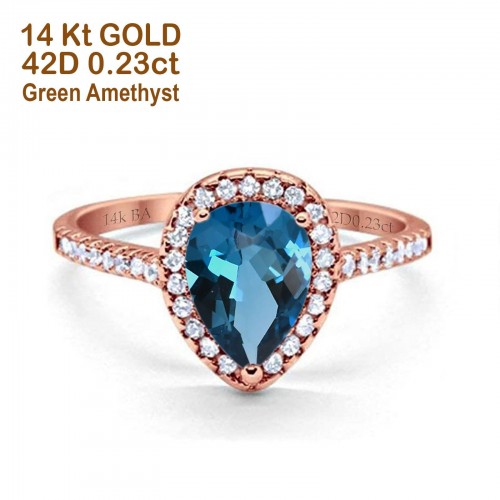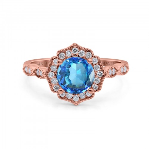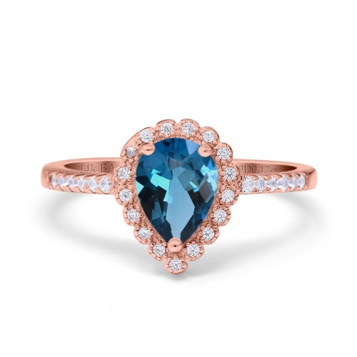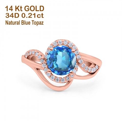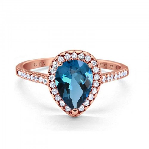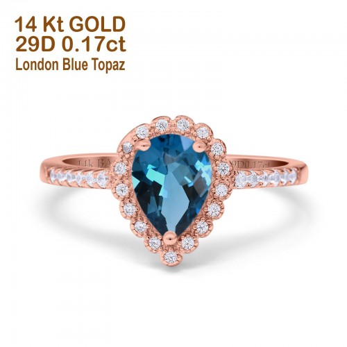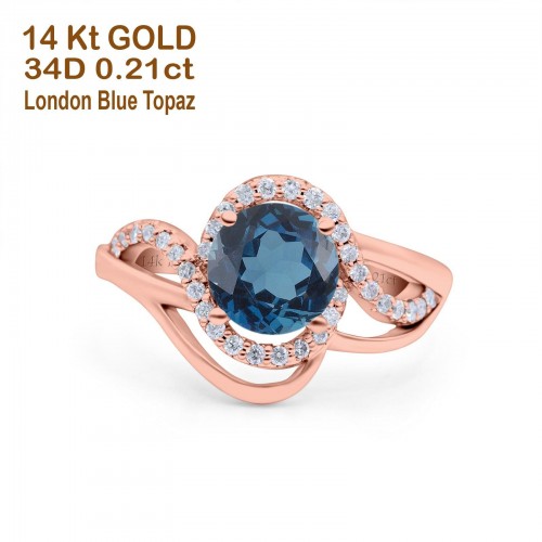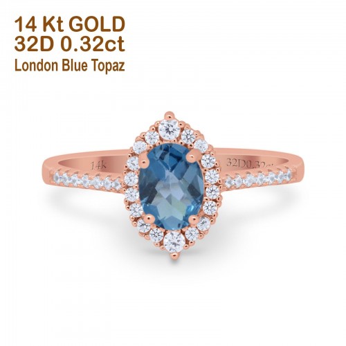 14K Rose Gold 1.53ct Oval London Blue Topaz G SI Diamond Engagement Ring Size 6.5
