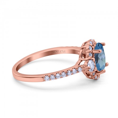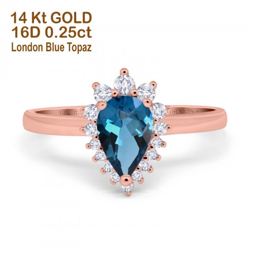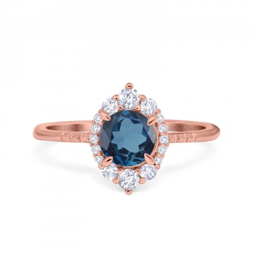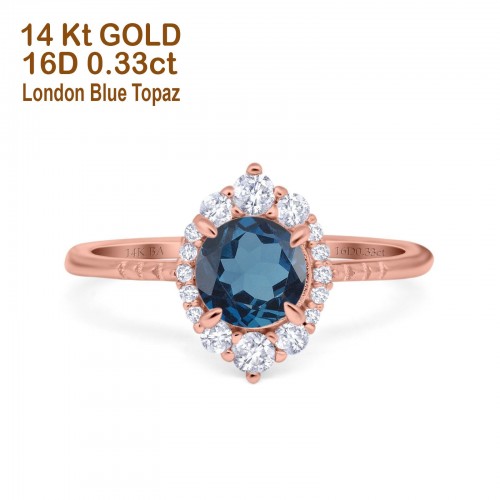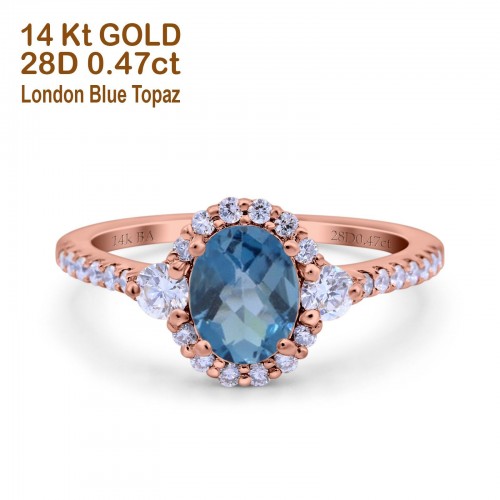 14K Rose Gold 1.68ct Oval London Blue Topaz G SI Diamond Engagement Ring Size 6.5