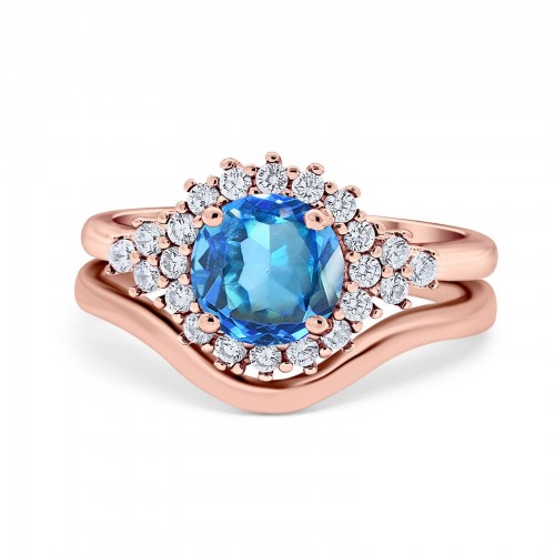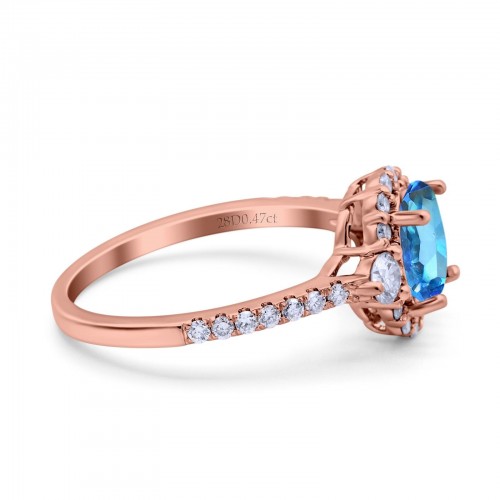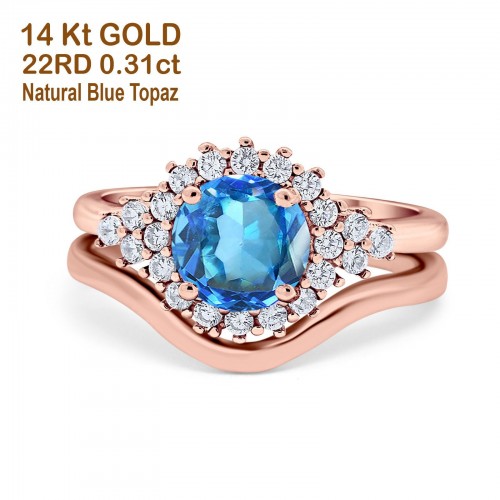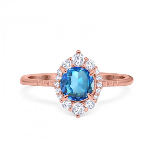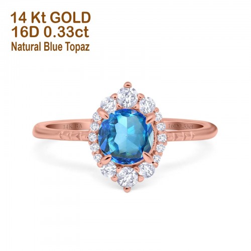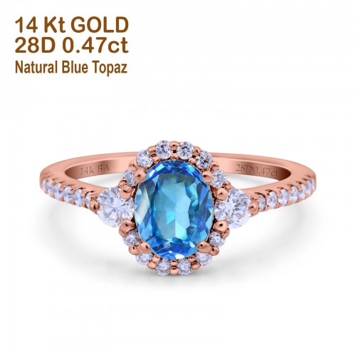 14K Rose Gold 1.68ct Oval Natural Swiss Blue Topaz G SI Diamond Engagement Ring Size 6.5