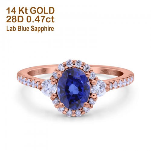 14K Rose Gold 1.68ct Oval Nano Blue Sapphire G SI Diamond Engagement Ring Size 6.5