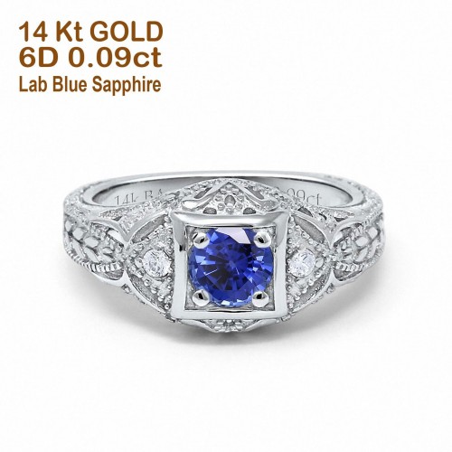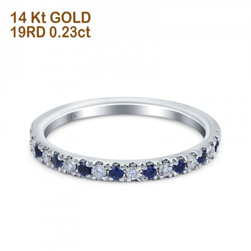 14K White Gold .16ct G SI Diamond & Blue Sapphire Hoop Huggie Earrings