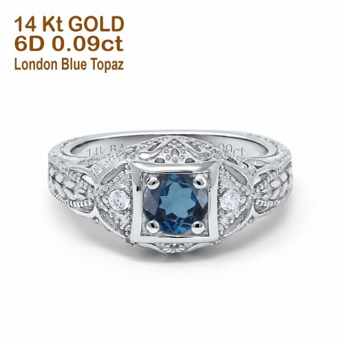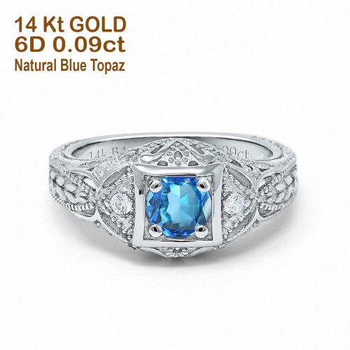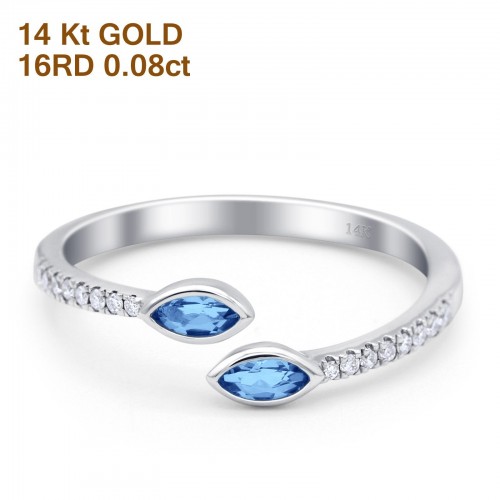 14K White Gold 0.21ct 2 Marquise Blue Topaz 6.5mm G SI Diamond Engagement Wedding Ring Size 6.5