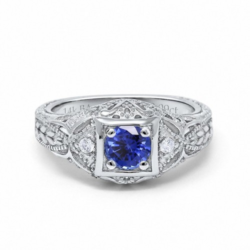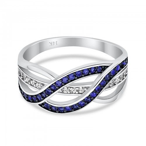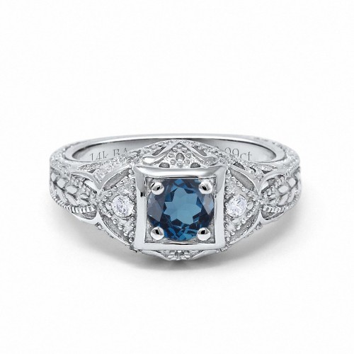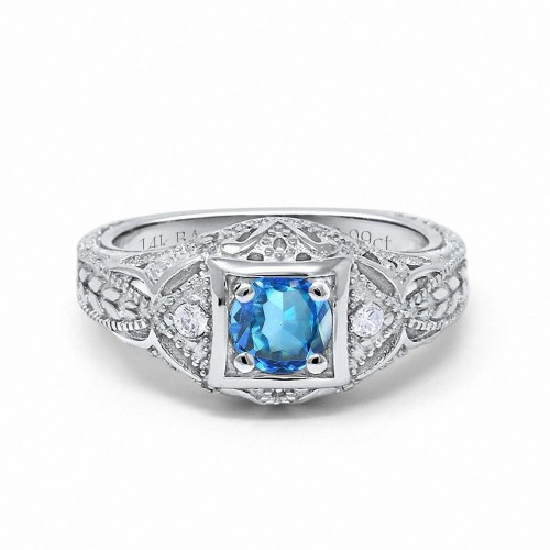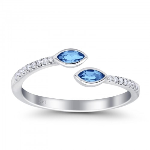 14K White Gold 0.21ct 2 Marquise Blue Topaz 6.5mm G SI Diamond Engagement Wedding Ring Size 6.5