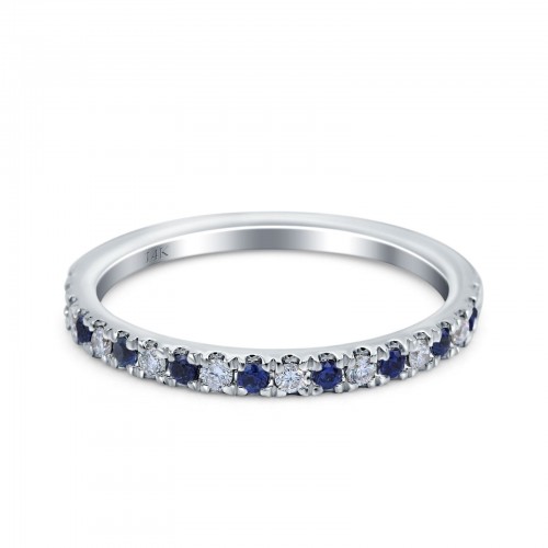14K White Gold .16ct G SI Diamond & Blue Sapphire Hoop Huggie Earrings
