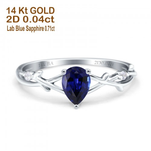 14K White Gold 0.75ct Nano Blue Sapphire Pear G SI Diamond Engagement Ring Size 6.5