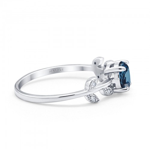 14K White Gold 0.87ct Round London Blue Topaz G SI Diamond Engagement Ring Size 6.5