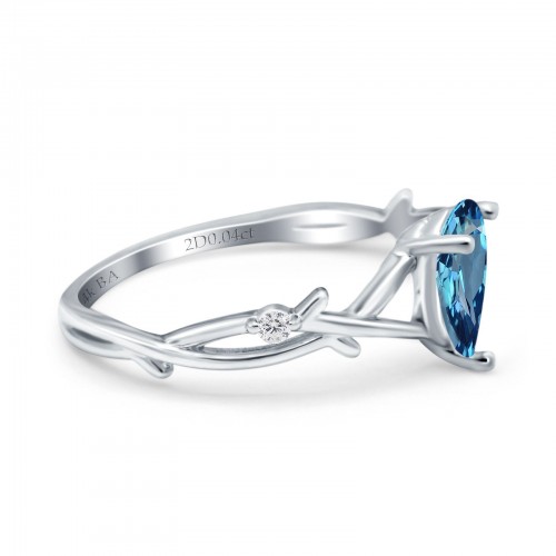 14K White Gold 0.75ct Natural Swiss Blue Topaz Pear G SI Diamond Engagement Ring Size 6.5