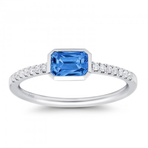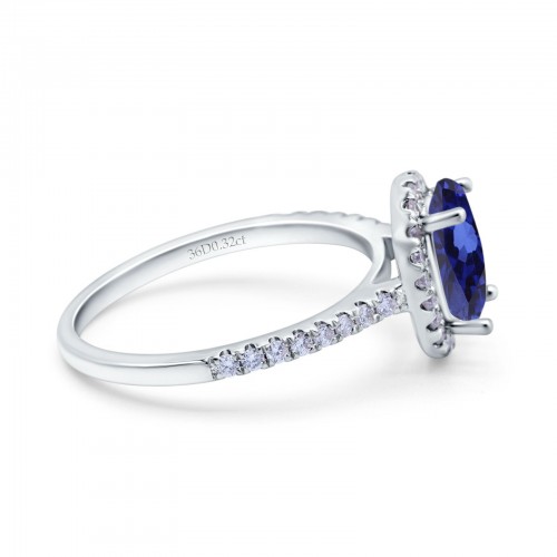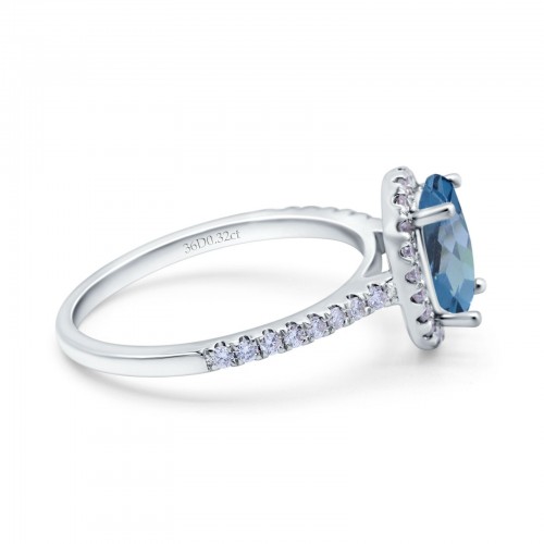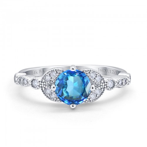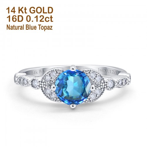 14K White Gold 0.8ct Trendy Cushion Blue Topaz 5.2mm G SI Diamond Engagement Wedding Ring Size 6.5