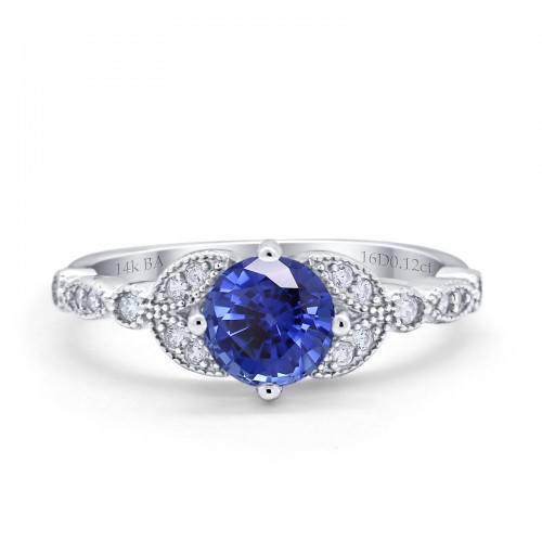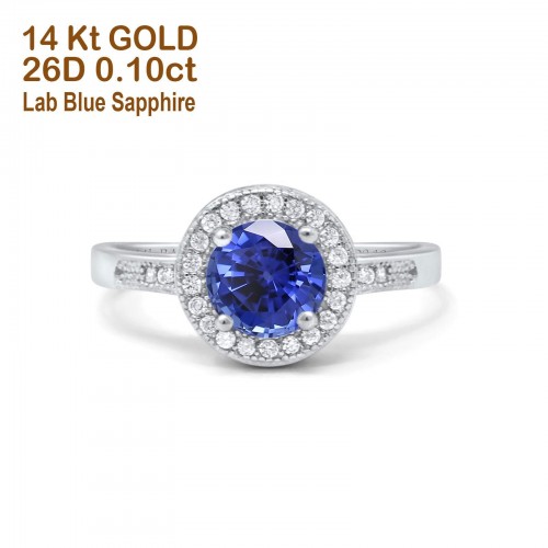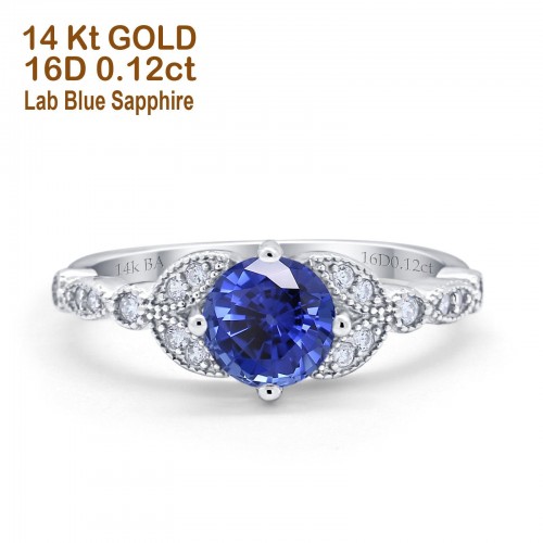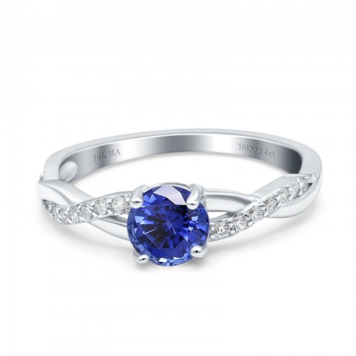 14K White Gold 0.93ct Oval Nano Blue Sapphire G SI Diamond Engagement Ring Size 6.5