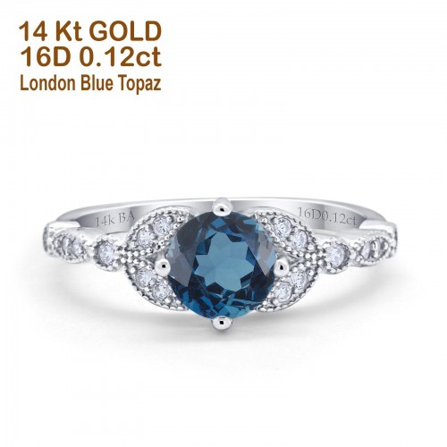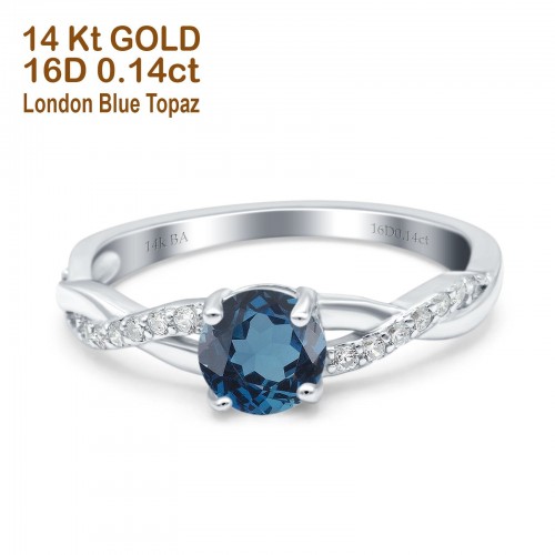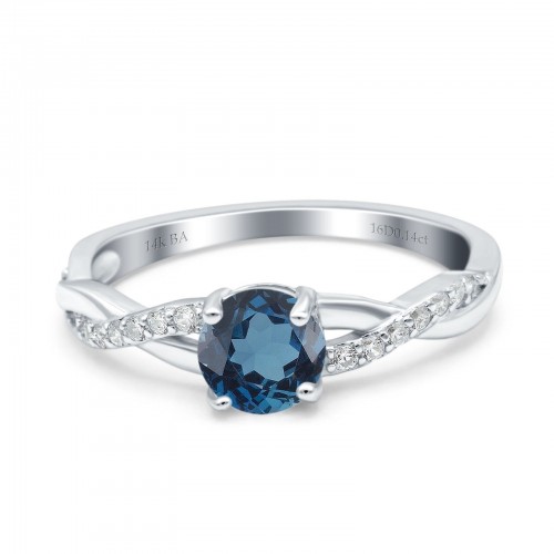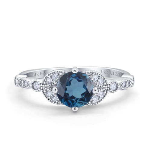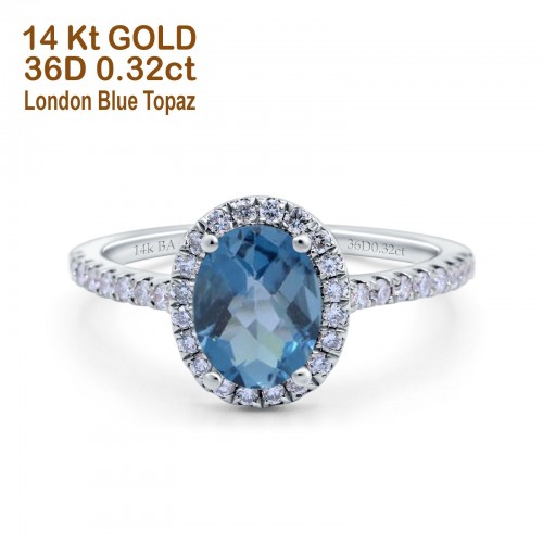 14K White Gold 0.93ct Oval London Blue Topaz G SI Diamond Engagement Ring Size 6.5