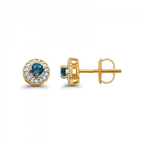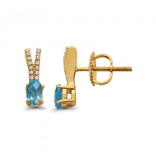 10K Yellow Gold Blue Topaz & Diamond .89ct Solitaire Pendant Necklace 18″