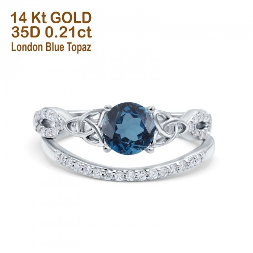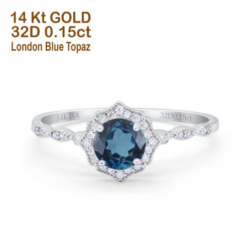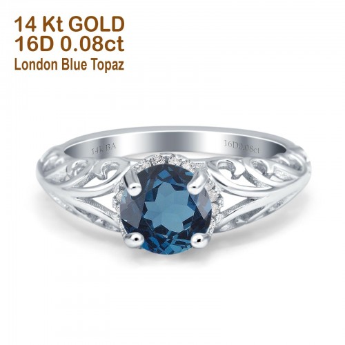 14K White Gold 1.01ct Round 6mm G SI London Blue Topaz Diamond Engagement Wedding Ring Size 6.5