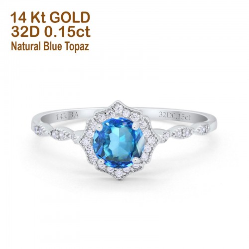14K White Gold 1.01ct Round 6mm G SI Natural Blue Topaz Diamond Engagement Wedding Ring Size 6.5