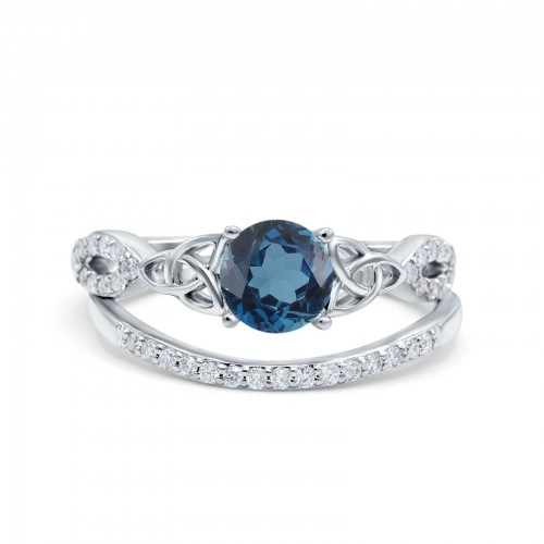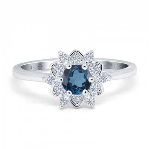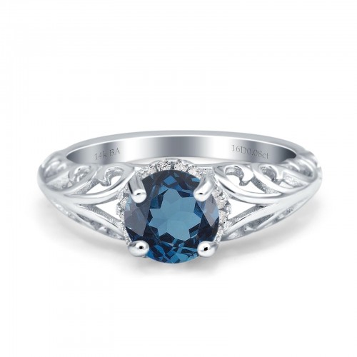 14K White Gold 1.01ct Round 6mm G SI London Blue Topaz Diamond Engagement Wedding Ring Size 6.5