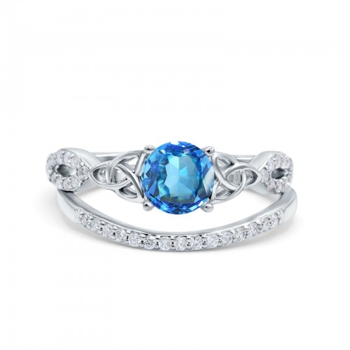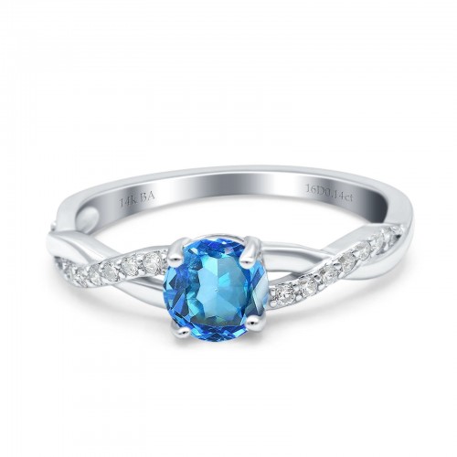 14K White Gold 1.01ct Round 6mm G SI Natural Blue Topaz Diamond Engagement Wedding Ring Size 6.5