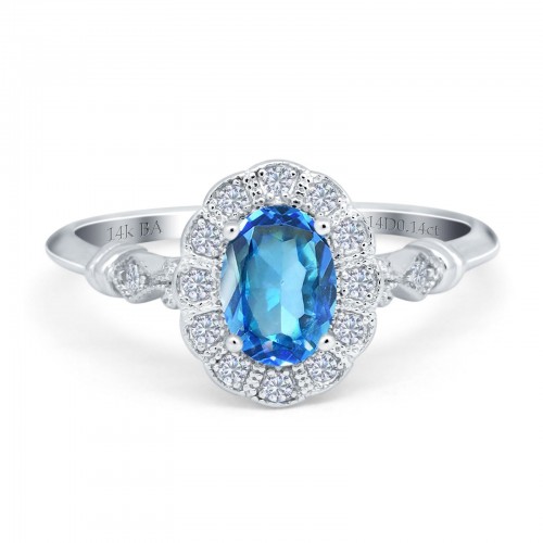 14K White Gold 0.9ct Oval 7mmx5mm G SI Natural Blue Topaz Diamond Engagement Wedding Ring Size 6.5