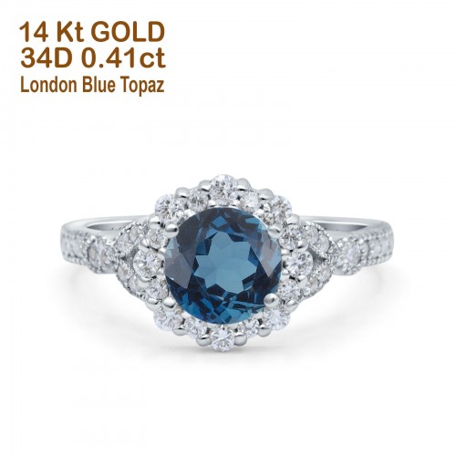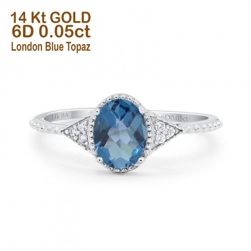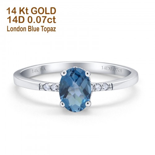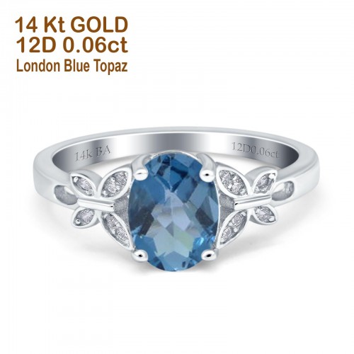 14K White Gold 1.28ct Oval 8mmx6mm G SI London Blue Topaz Diamond Engagement Wedding Ring Size 6.5