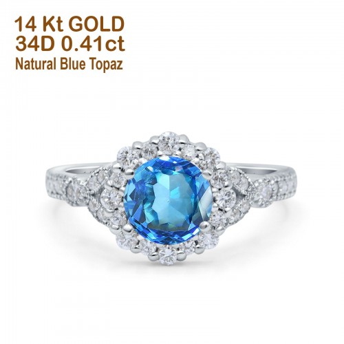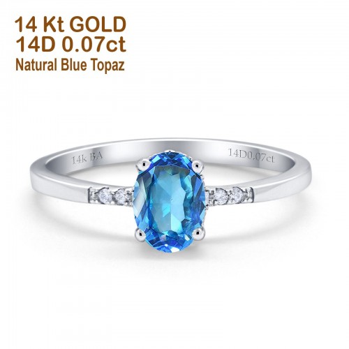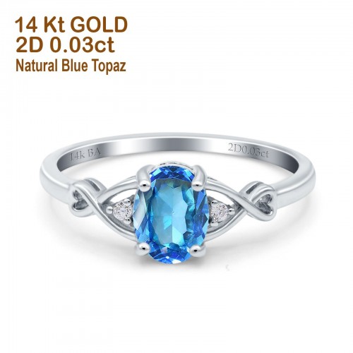 14K White Gold 1.28ct Oval 8mmx6mm G SI Natural Blue Topaz Diamond Engagement Wedding Ring Size 6.5