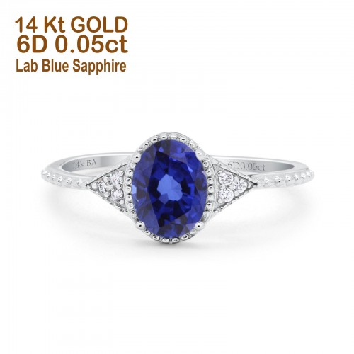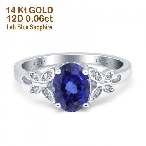 14K White Gold 1.28ct Oval 8mmx6mm G SI Nano Blue Sapphire Diamond Engagement Wedding Ring Size 6.5