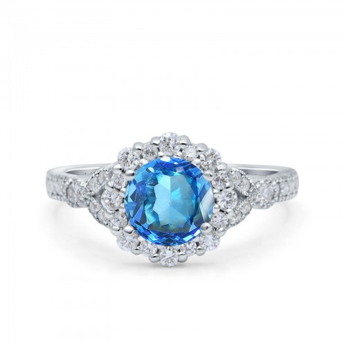 14K White Gold 1.28ct Oval 8mmx6mm G SI London Blue Topaz Diamond Engagement Wedding Ring Size 6.5