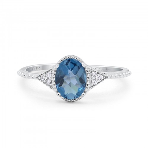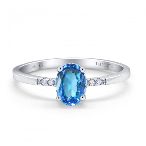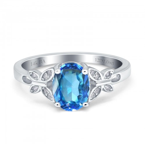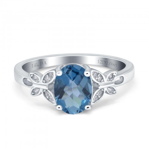 14K White Gold 1.28ct Oval 8mmx6mm G SI Natural Blue Topaz Diamond Engagement Wedding Ring Size 6.5