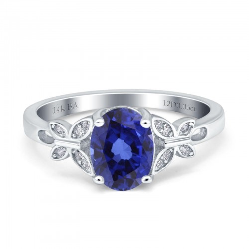 14K White Gold 1.28ct Oval 8mmx6mm G SI Nano Blue Sapphire Diamond Engagement Wedding Ring Size 6.5