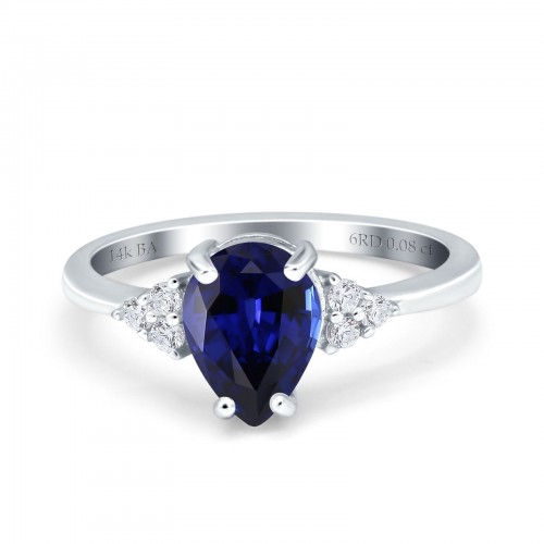 14K White Gold 1.37ct Round 7mm G SI Nano Blue Sapphire Diamond Engagement Wedding Ring Size 6.5