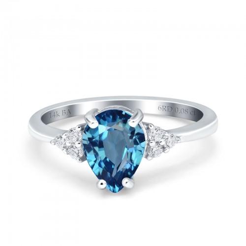 14K White Gold 1.37ct Round 7mm G SI London Blue Topaz Diamond Engagement Wedding Ring Size 6.5