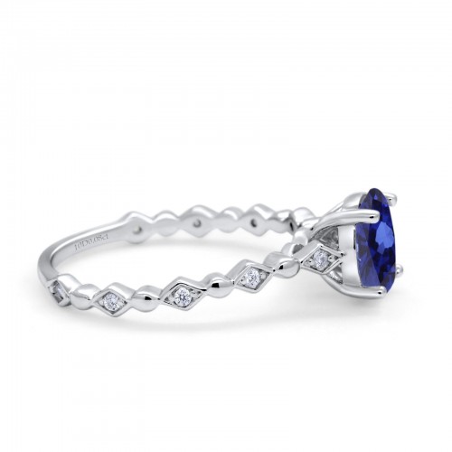 14K White Gold 1.29ct Oval Nano Blue Sapphire G SI Diamond Engagement Ring Size 6.5