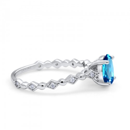 14K White Gold 1.29ct Oval Natural Swiss Blue Topaz G SI Diamond Engagement Ring Size 6.5