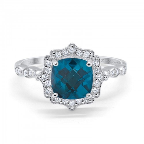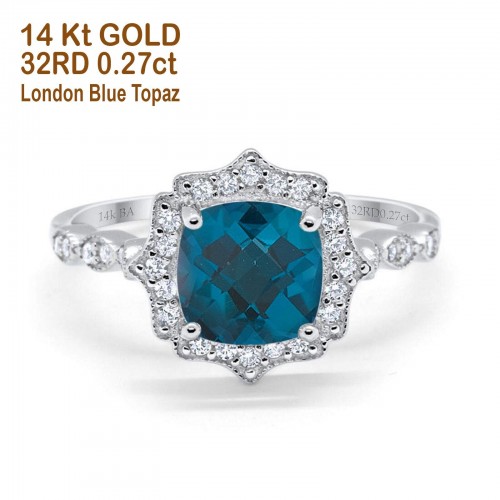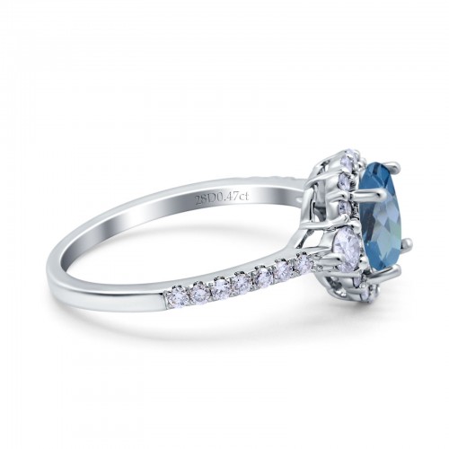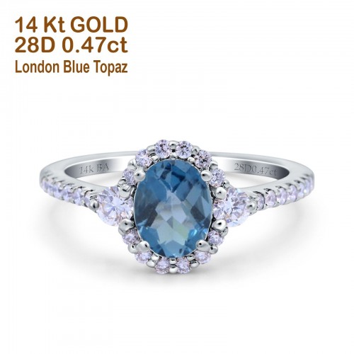 14K White Gold 1.68ct Oval London Blue Topaz G SI Diamond Engagement Ring Size 6.5