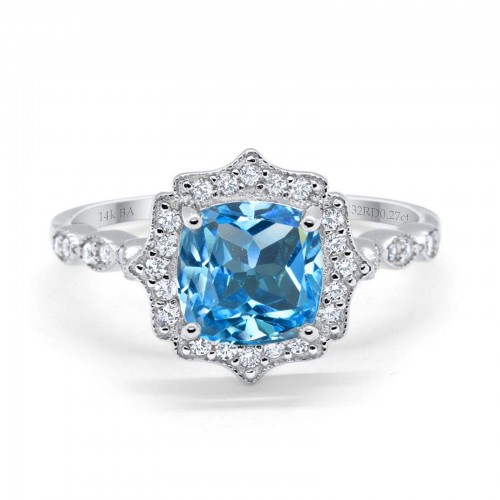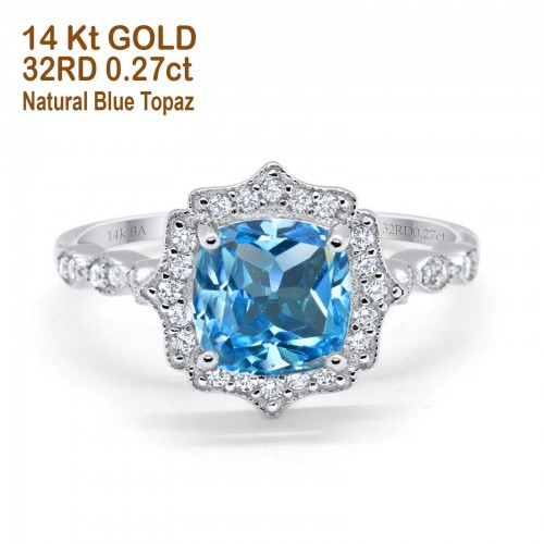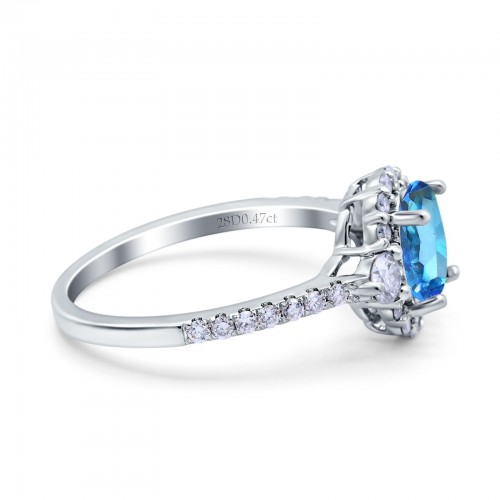 14K White Gold 1.68ct Oval Natural Swiss Blue Topaz G SI Diamond Engagement Ring Size 6.5