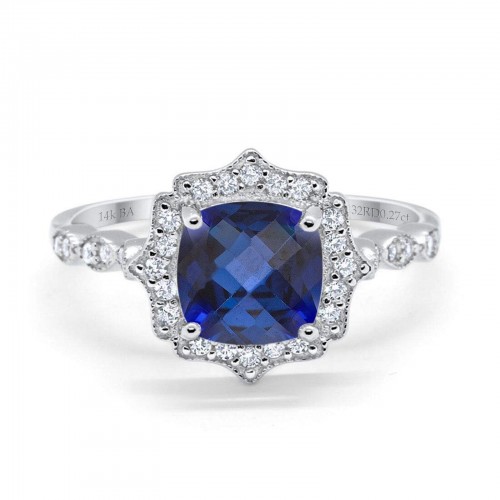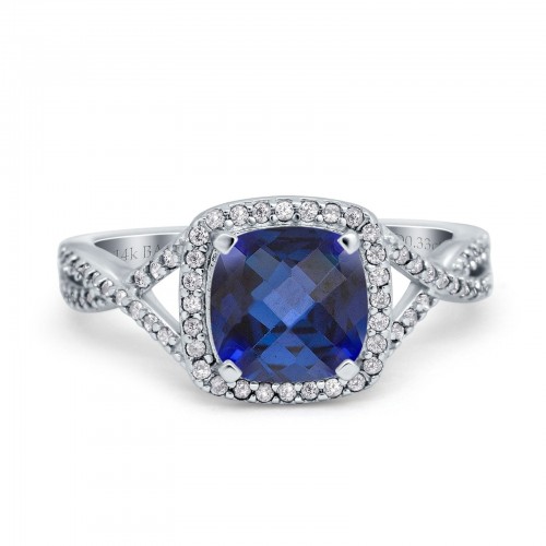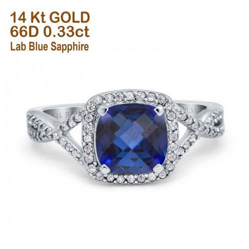 14K White Gold 1.68ct Oval Nano Blue Sapphire G SI Diamond Engagement Ring Size 6.5