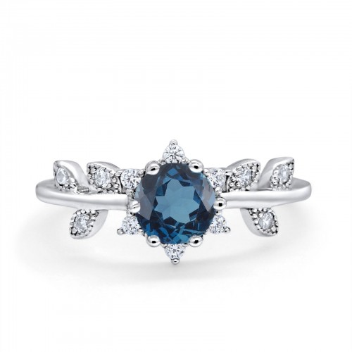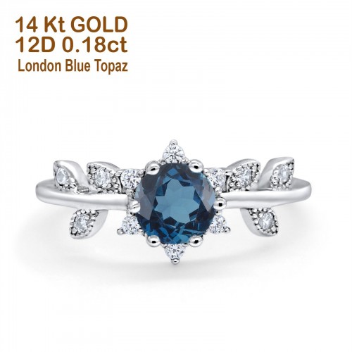 14K White Gold Round London Blue Topaz G SI 1.02ct Diamond Engagement Ring Size 6.5