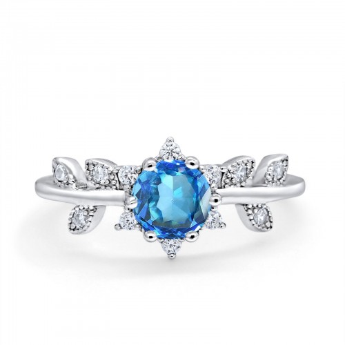 14K White Gold Round Natural Blue Topaz G SI 1.02ct Diamond Engagement Ring Size 6.5