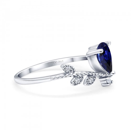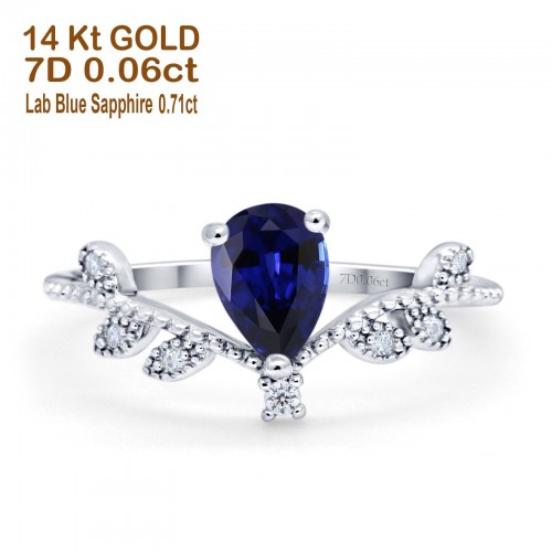 14K White Gold Pear Nano Blue Sapphire 0.77ct G SI Diamond Engagement Ring Size 6.5