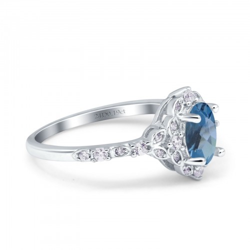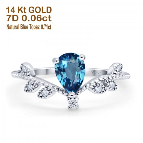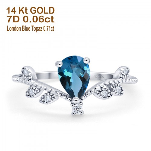 14K White Gold Pear London Blue Topaz 0.77ct G SI Diamond Engagement Ring Size 6.5