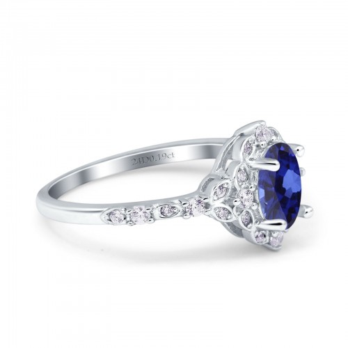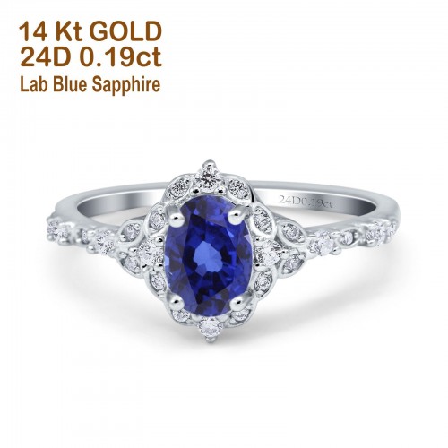 14K White Gold Oval Nano Blue Sapphire 0.95ct G SI Diamond Engagement Ring Size 6.5