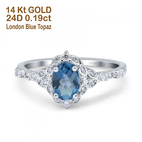 14K White Gold Oval London Blue Topaz 0.95ct G SI Diamond Engagement Ring Size 6.5