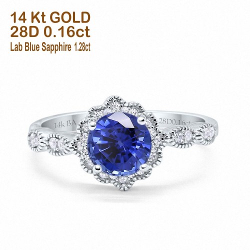 14K White Gold Round Nano Blue Sapphire 1.44ct G SI Diamond Engagement Ring Size 6.5