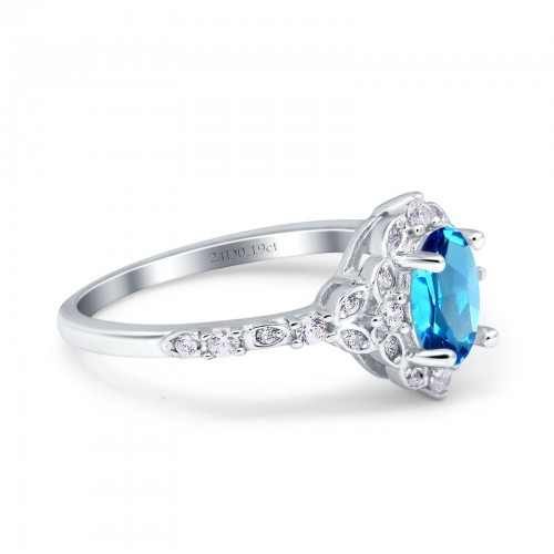 14K White Gold Oval Natural Swiss Blue Topaz 0.95ct G SI Diamond Engagement Ring Size 6.5