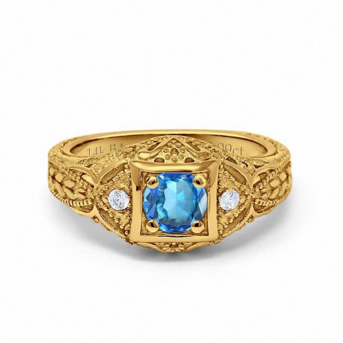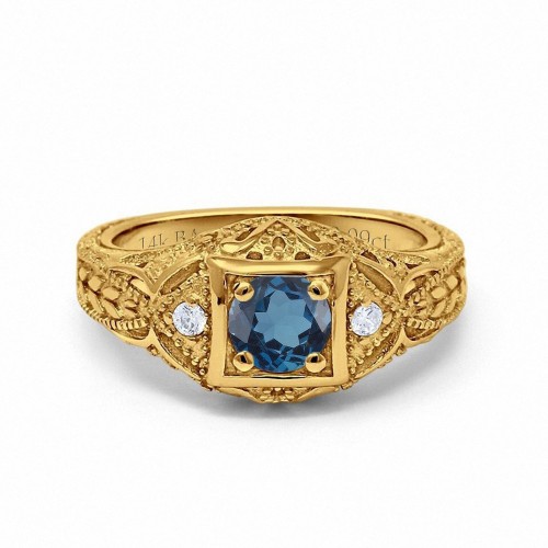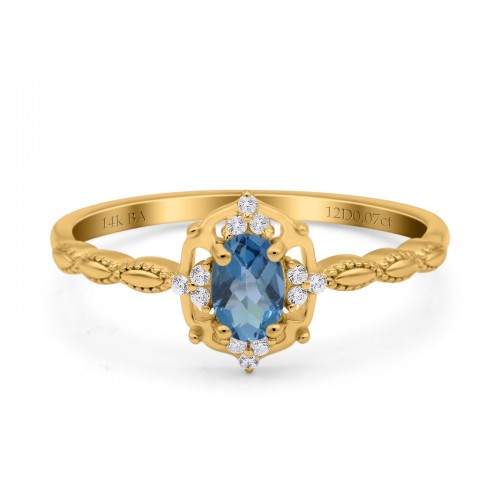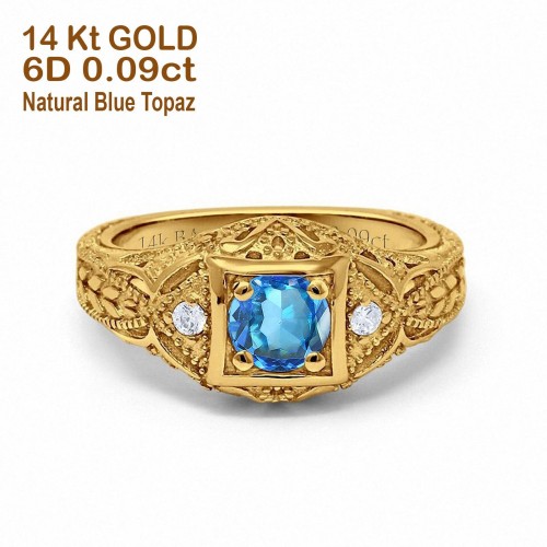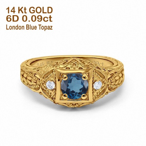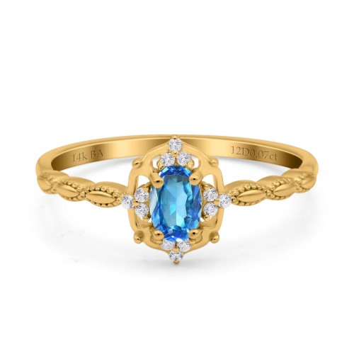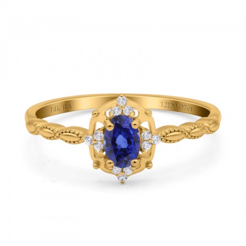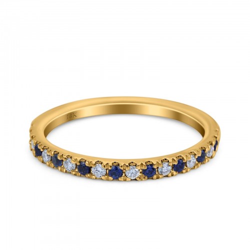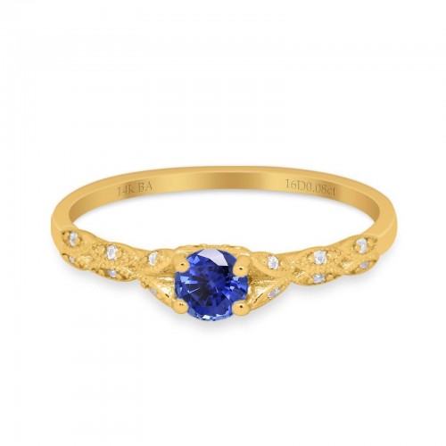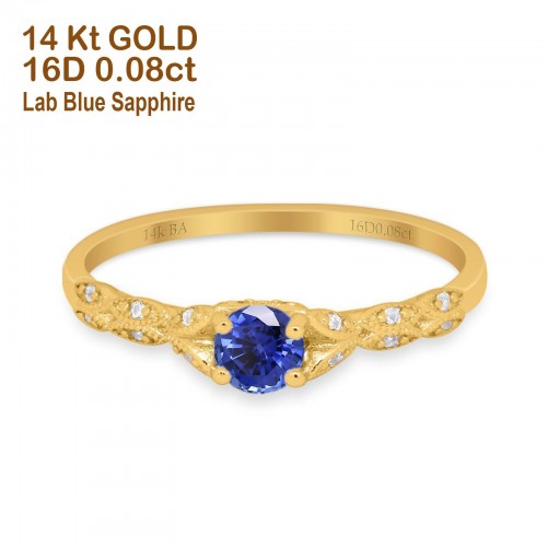 14K Yellow Gold .16ct G SI Diamond & Blue Sapphire Hoop Huggie Earrings
