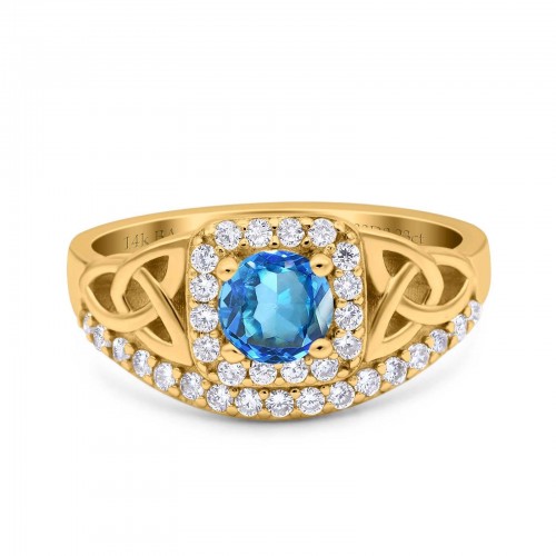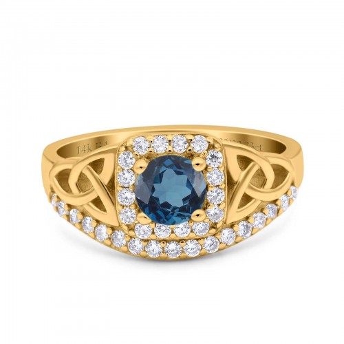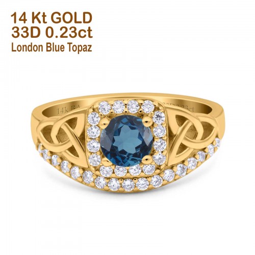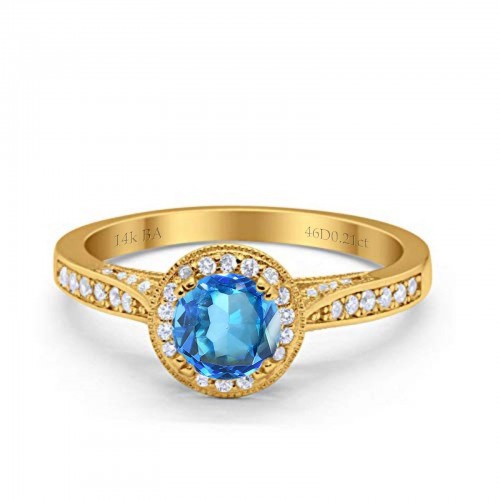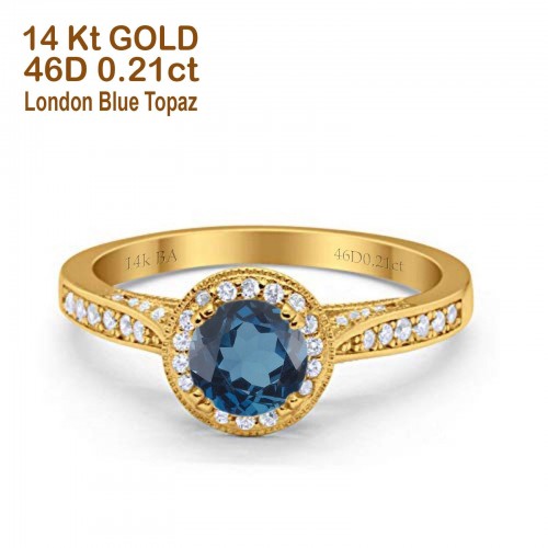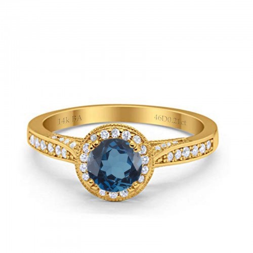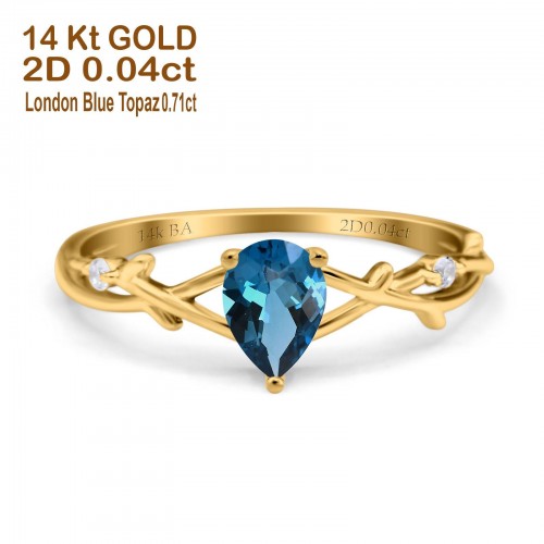 14K Yellow Gold 0.75ct London Blue Topaz Pear G SI Diamond Engagement Ring Size 6.5