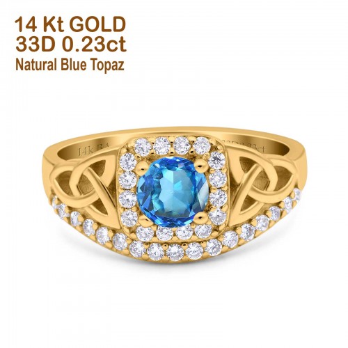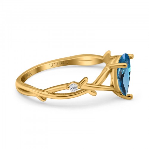 14K Yellow Gold 0.75ct Natural Swiss Blue Topaz Pear G SI Diamond Engagement Ring Size 6.5