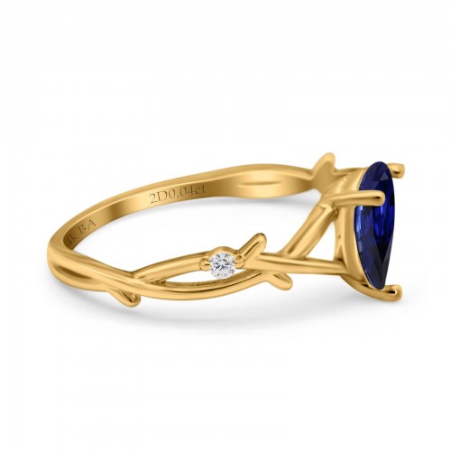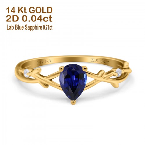 14K Yellow Gold 0.75ct Nano Blue Sapphire Pear G SI Diamond Engagement Ring Size 6.5