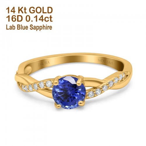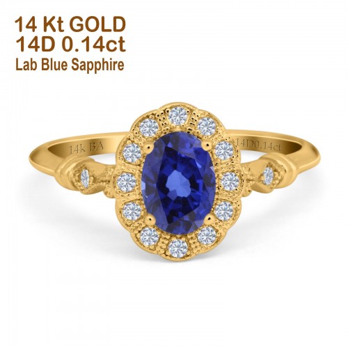 14K Yellow Gold 0.9ct Oval 7mmx5mm G SI Nano Blue Sapphire Diamond Engagement Wedding Ring Size 6.5