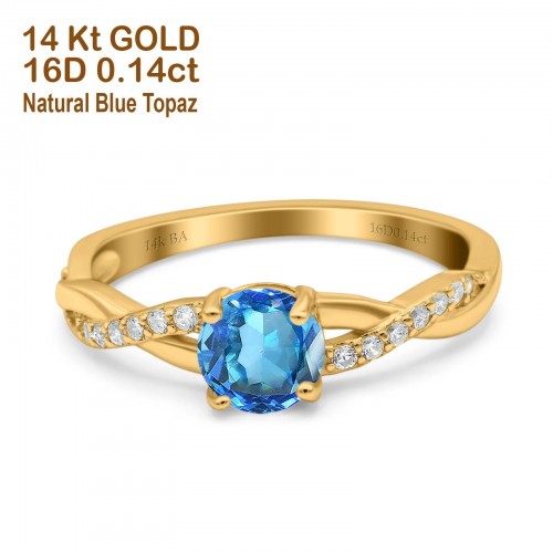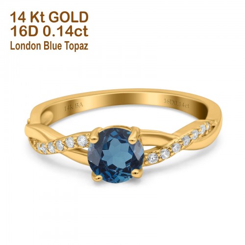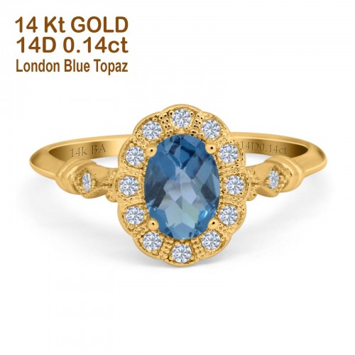 14K Yellow Gold 0.9ct Oval 7mmx5mm G SI London Blue Topaz Diamond Engagement Wedding Ring Size 6.5