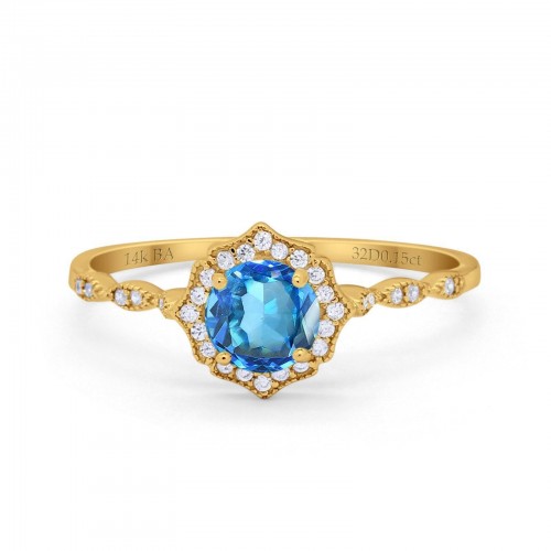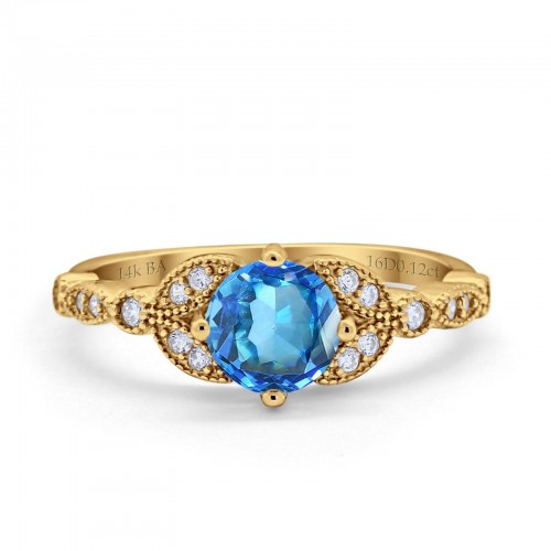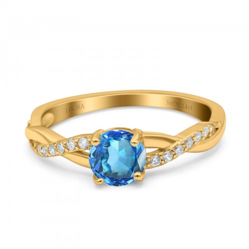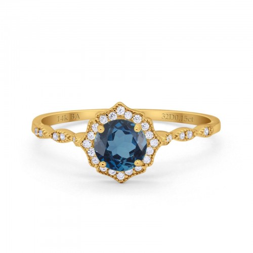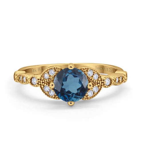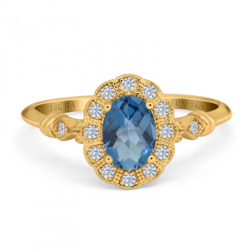 14K Yellow Gold 0.9ct Oval 7mmx5mm G SI London Blue Topaz Diamond Engagement Wedding Ring Size 6.5