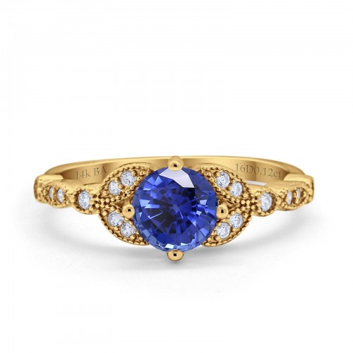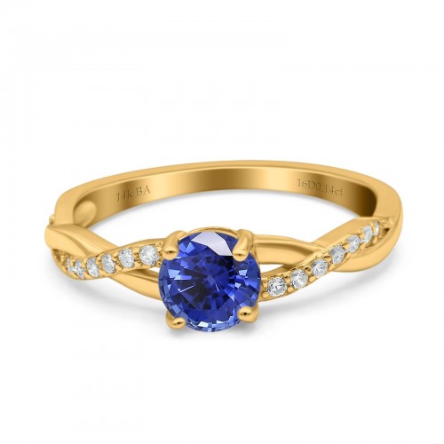 14K Yellow Gold 0.9ct Oval 7mmx5mm G SI Nano Blue Sapphire Diamond Engagement Wedding Ring Size 6.5